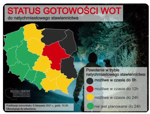 W ciągu sześciu godzin można spodziewać się powołań dla żołnierzy WOT z województw: warmińsko-mazuskiego, podlaskiego i lubelskiego.
