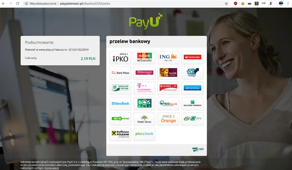 udającej pośrednika płatności.
