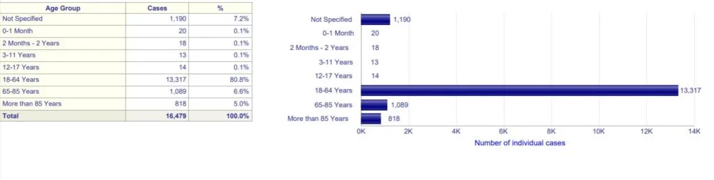 Liczba zgłoszonych (większość zgłoszeń pochodzi od personelu placówek medycznych) skutków ubocznych do 23.01.21 —– 16 479, w tym poważne – 13 606.
