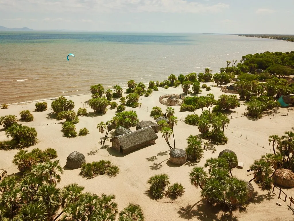 Jest to największe na świecie trwałe jezioro pustynne, sąsiadujące z pustynią Chalbi. Jego brzegi to wychodnie, skaliste brzegi i wydmy. Jezioro zasilane jest przez trzy rzeki: Turkwel, Kerio i Omo. Omo zapewnia 90% dopływu. Jednak nie ma odpływu. Jedyną formą utraty wody jest parowanie.