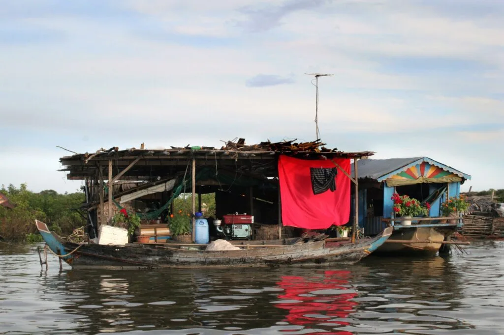 Cała pływająca wioska to społeczność żyjąca na jeziorze. Domki często oparte są na beczkach lub różnych fragmentach łodzi (głównie Chong Kneas) lub na wysokich palach (Kompong Phluk).