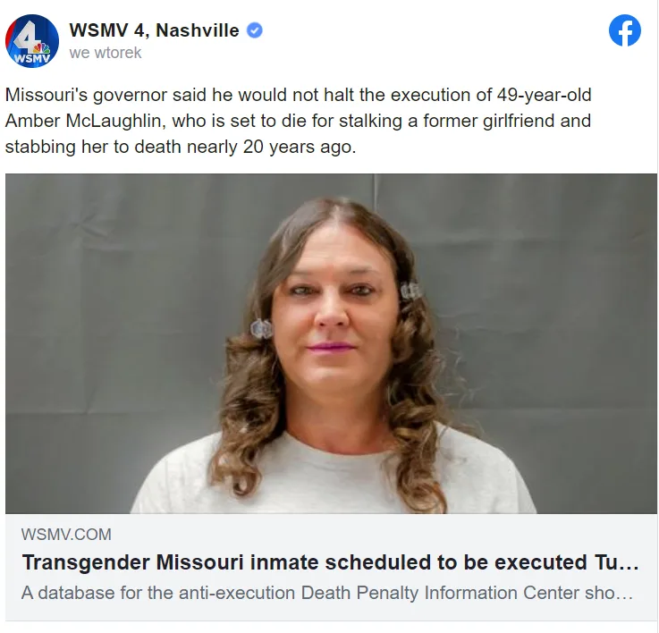 Lokalna stacja informacyjna podała, że McLaughlin zmarła w wyniku śmiertelnego zastrzyku.