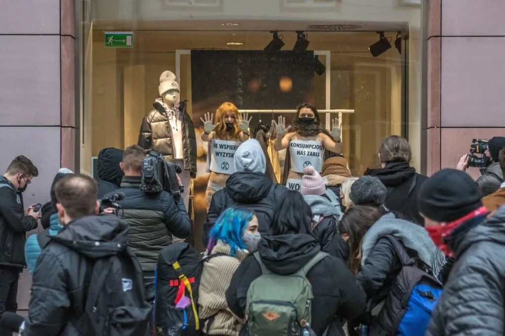 Uczestniczące w akcji kobiet podkreślają, że ważne było dla nich także zwrócenie uwagi na sytuację kobiet w przemyśle odzieżowym oraz rolę kobiecego ciała w kulturze. – Przemysł odzieżowy istnieje dzięki symbolicznej i materialnej opresji wobec kobiet. Odmawiamy udziału w tym spektaklu i używamy naszych ciał jako narzędzi protestu. Tylko one nam pozostały – tłumaczy Zofia, aktywistka XR.